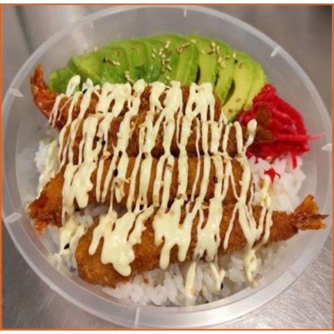Breaded Prawns DonServed with kewpie mayo, sesame seeds and avacado
