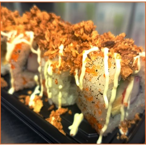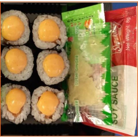 Dragon RollTempura Prawn, Tamago,Cucumber and Spicy Mayo