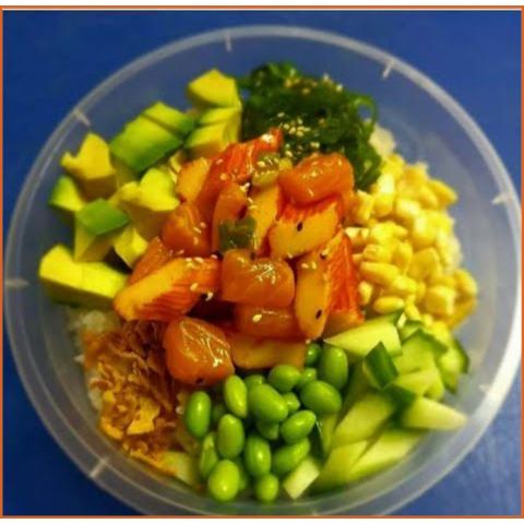 Haiwaii Poke Spicy Surimi & Salmonmayo sweetcorn, goma wakame, Cucumber, avocado, edamame, dry shallot -