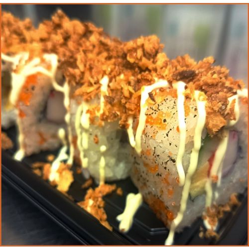With cucumber, avocado, whole soft shell crab with spicy mayo and kewpie mayo