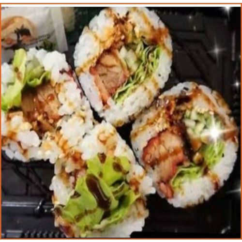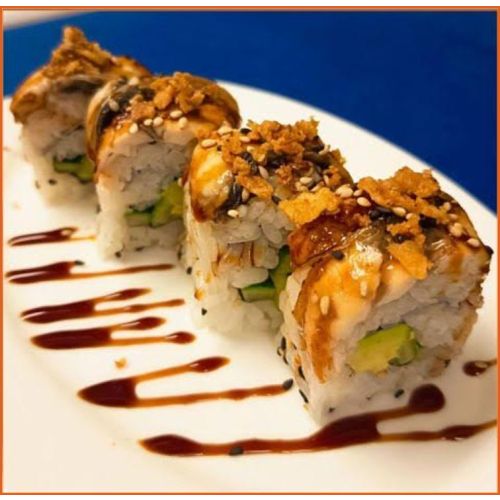 Unagi Uramaki (4 pcs)With cucumber, avocado, sesame seeds & a sprinkle of dry onions
